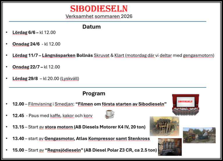 Sommarens program vårt senaste tillskott. Ett John Hesselman vedgasaggregat från 40-talet. Bilderna nedan visar arbetet med projektet. Vedgasaggregatet kommer att startas tillsammans med dieselmotorn i sommar! Delar till gengasaggregatPåbörjad renoveringPrimärluftportarFläktHesselman tillv.skyltSå fungerar detTillverkning vagn till aggregatFärdig vagn